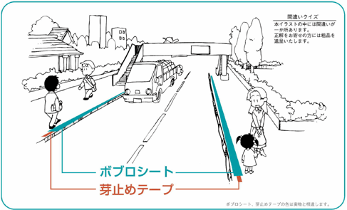 | ● | 発芽箇所をテーピングして防草するために、薬剤のように環境や人体への影響がなく安全・安心。 |